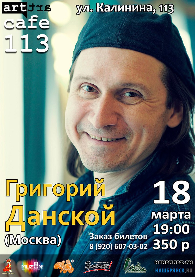 18 марта 2017 года состоится вечер авторской песни ГРИГОРИЯ ДАНСКОГО в Арт-кафе 113 города Брянска.