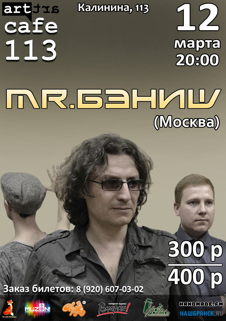 12 марта 2017 года в Арт-кафе 113 выступает Московская группа MR.БЭНИШ с презентацией нового альбома "Медовая ловушка".