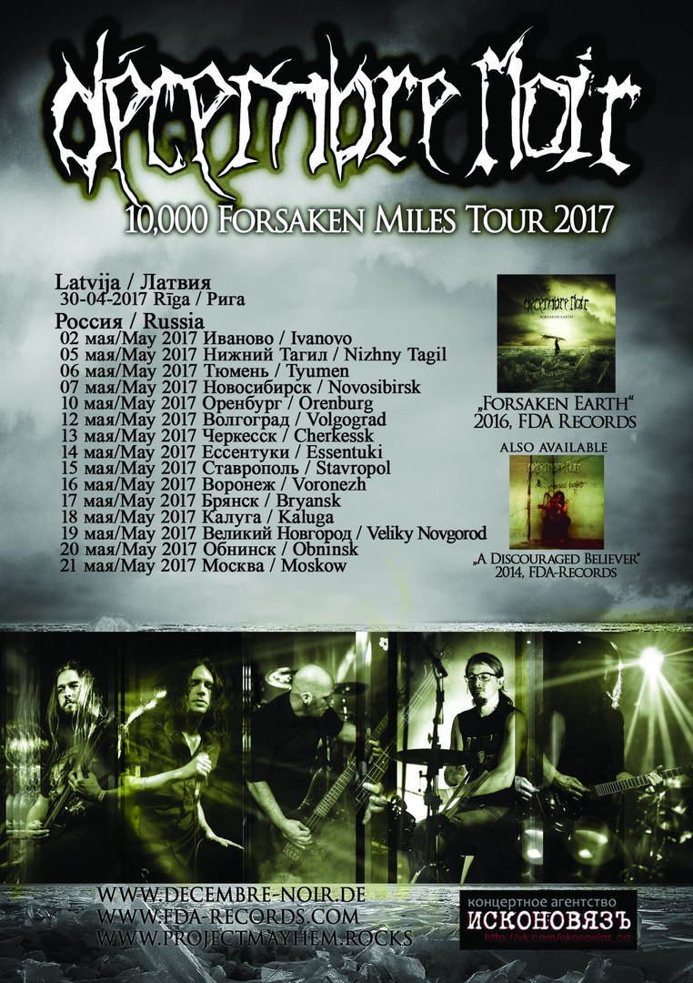 DECEMBRE NOIR - является одним из лидеров мировой Melancholic Death/Doom Metal сцены. Группа образовалась в 2008 году, но первый альбом пришлось ждать целых 6 лет и на данный момент в копилке коллектива 2 полноформатные пластинки. Каждый диск получал только отличные оценки поклонников и профессионалов Металл движения во всем мире. За время выступлений Décembre Noir выступали совместно со многими металлистами мира.