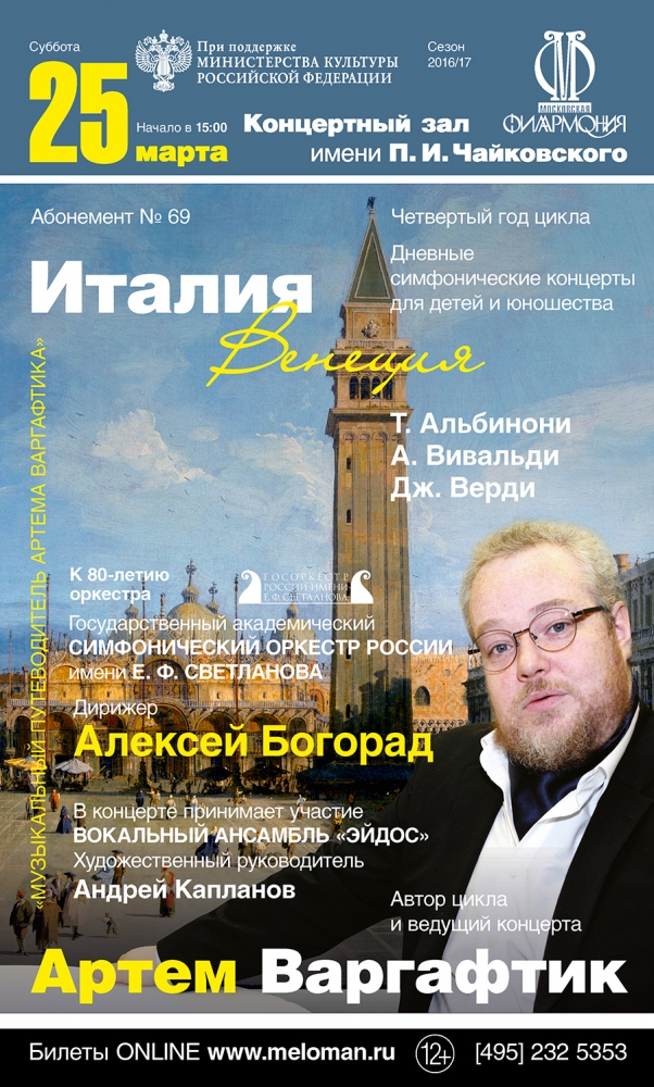 25 марта 2017 года в Брянской областной филармонии, состоится прямая трансляция из Концертного зала имени П.И. Чайковского город Москва, в котором пройдет концерт Государственного академического симфонического оркестра России имени Е.Ф Свесланова под управлением дирижера Алексея Богорада. В концерте принимает участие вокальный ансамбль «Эйдос», художественный руководитель Андрей Кпланов.