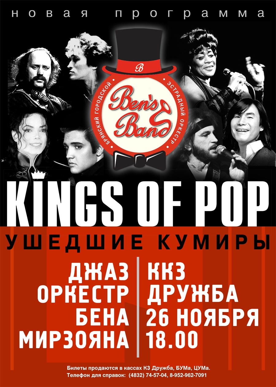 26 ноября 2017 года, на сцене концертного зала «Дружба» выступит Брянский городской эстрадный оркестр под управлением Бениамина Мирзояна BEN"s BAND c новjq программjq «Ушедшие кумиры».