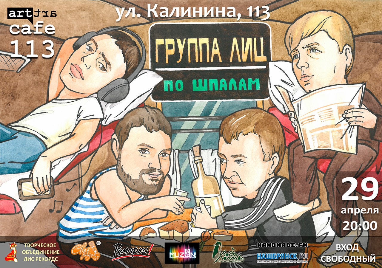 29 апреля 2017 года в Арт-кафе 113 пройдет концерт коллектива "Группа Лиц".