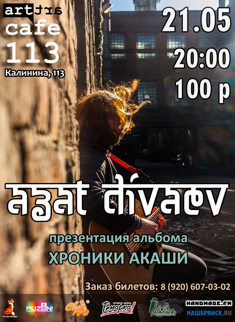 21 мая 2017 года в Арт-Кафе 113 выступит музыкант из Санкт-Петербурга, Азат Диваев с презентацией своего нового альбома "Хроники Акаши".