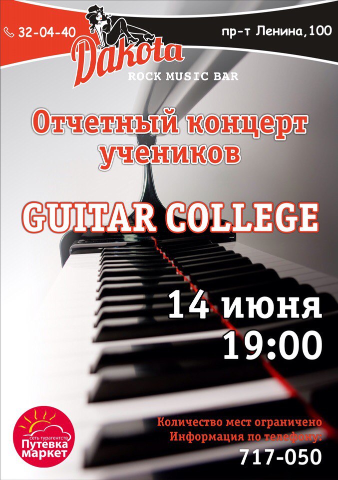 14 июня 2017 года в Брянском баре DAKOTA состоится отчетный концерт учеников школы современной музыки GUITAR COLLEGE.