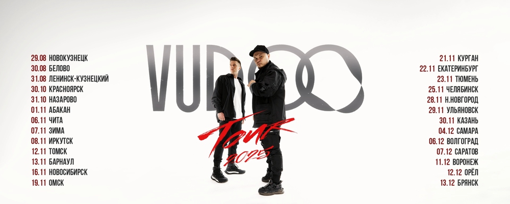 13 декабря 2025 года в клубе «Deus» города Брянска состоится концерт Vudoo с программой запоминающихся треков.