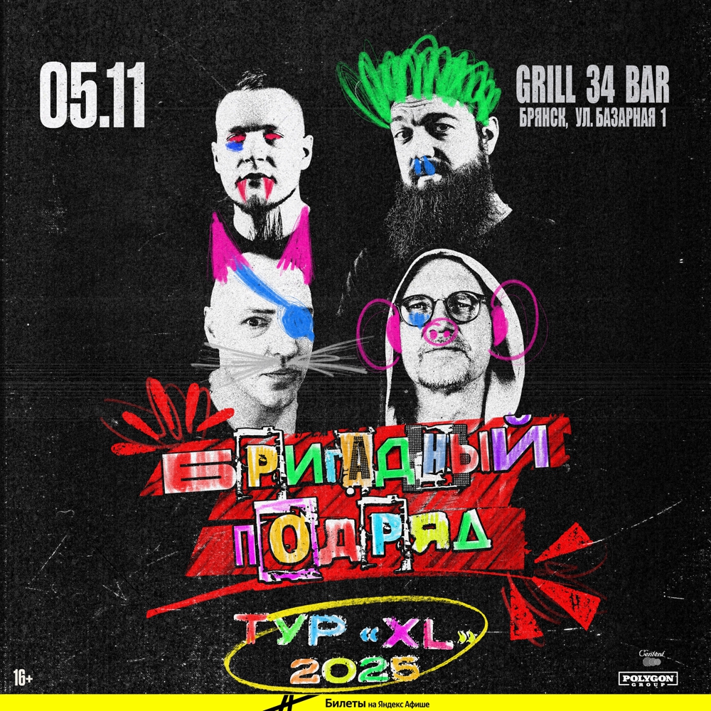 5 ноября 2025 года в Grill bar 34 города Брянска пройдёт грандиозный концерт панк-рок-команды из Санкт-Петербурга - Бригадный подряд.
