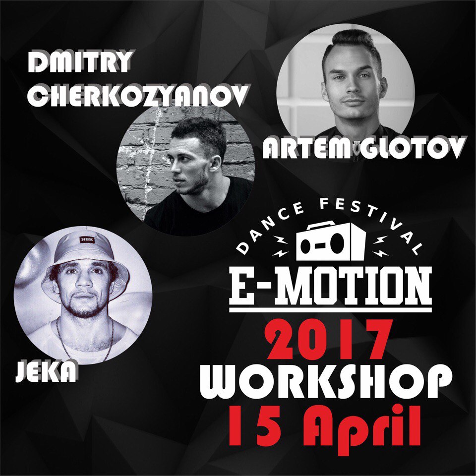 15 апреля 2017 года в рамках фестиваля E-MOTION DANCE FESTIVAL пройдет "E-motion dance workshop" - 3 мастер-класса от судей нашего фестиваля по дисциплине STREET, ведущих танцоров страны: